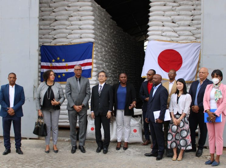 Aconteceu hoje, dia 16 de janeiro, o ato oficial de entrega da ajuda alimentar do Governo japonês a Cabo Verde, no âmbito das Relações de Amizade e de Cooperação entre os dois países, no montante de mil, quatrocentos e cinquenta e cinco toneladas de arroz – 1.455,27, referente ao ano fiscal de 2021, cujo valor ronda os duzentos e cinquenta milhões de ienes japonês – 250.000.000 JPY, cerca de cento e noventa e quatro milhões, quinhentos e quarenta e sete mil, novecentos e trinta escudos e cinquenta e seis centavos (194.547.930,56 CVE).