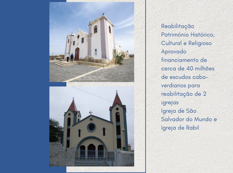 O Governo de Cabo Verde acaba de disponibilizar um financiamento, no montante de 40 milhões de escudos cabo-verdianos para a reabilitação da Igreja de São Roque em Rabil, sito na ilha da Boa Vista e a Igreja de São Salvador do Mundo, na ilha de Santiago.