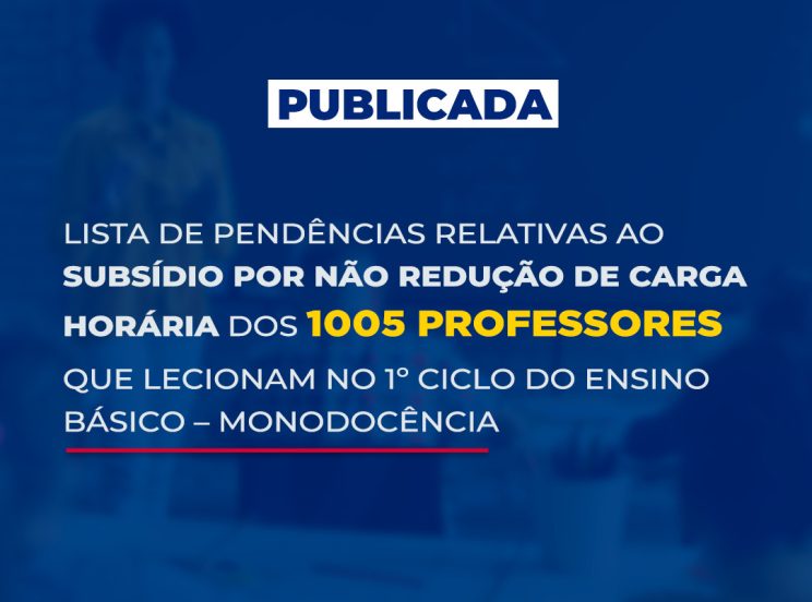O Governo de Cabo Verde, através do Ministério das Finanças e Fomento Empresarial, Ministério da Modernização do Estado e da Administração Pública e do Ministério da Educação, acaba de publicar no Boletim Oficial (B.O) a lista de pendências relativas ao Subsídio por Não Redução de Carga Horária dos 1005 (mil e cinco) professores que lecionam no 1º ciclo do ensino básico – Monodocência, nos termos do n.º 5 do artigo 50º do Decreto-Lei n.º 69/2015, de 12 de dezembro.