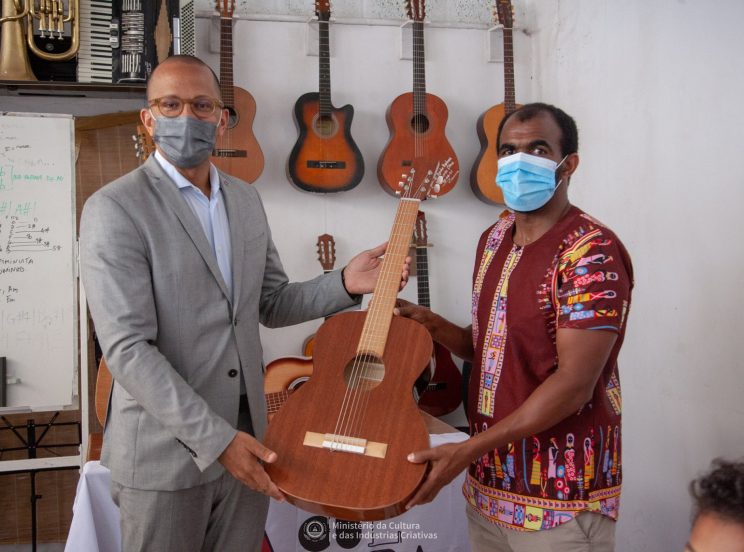 O Ministro da Cultura e das Indústrias Criativas, Abraão Vicente, entregou na manhã de ontem, dia 28 de abril, 4 guitarras aos alunos da Escola de Música Acorde D’Alma, beneficiária do programa Bolsa de Acesso à Cultura.