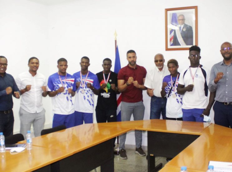 O Ministro Adjunto do Primeiro Ministro para a Juventude e Desporto, Carlos do Canto Monteiro recebeu hoje, 14, uma delegação da Federação Cabo-verdiana de Boxe, representada pelo Presidente Manuel Monteiro, Treinador Adilson Varela e pelos atletas Márcio Monteiro, Elisandro Silva, Admilson Carvalho, Lenick Fernandes e Sifonelo Borges, que recentemente representaram o país no Campeonato da Zona II d’África, tendo conquistado 7 medalhas (quatro de ouro, uma de prata e duas de bronze).