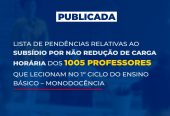 Governo publica lista de subsídio por não redução da carga horária beneficiando 1005 professores que lecionam na monodocência