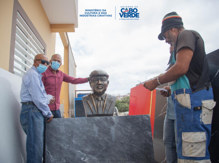 O Ministro da Cultura e das Indústrias Criativas, Abraão Vicente, foi constatar, na manhã desta terça-feira, 11 de agosto, a fase de acabamento do busto que foi fundido na empresa COSAN, do Mindelo e feito pelo artista plástico Rô Interart Cruz.