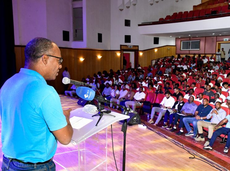 Na sequência dos encontros que o Primeiro Ministro vem mantendo com os jovens, um pouco por todo o país, para falar das oportunidades de formação profissional e técnico, Ulisses Correia e Silva esteve, hoje, no Auditório Jorge Barbosa, com os beneficiários do Projeto “Ami ê di Paz y Bô?”, no âmbito do acompanhamento das ações deste programa que tem registado resultados muito positivos.